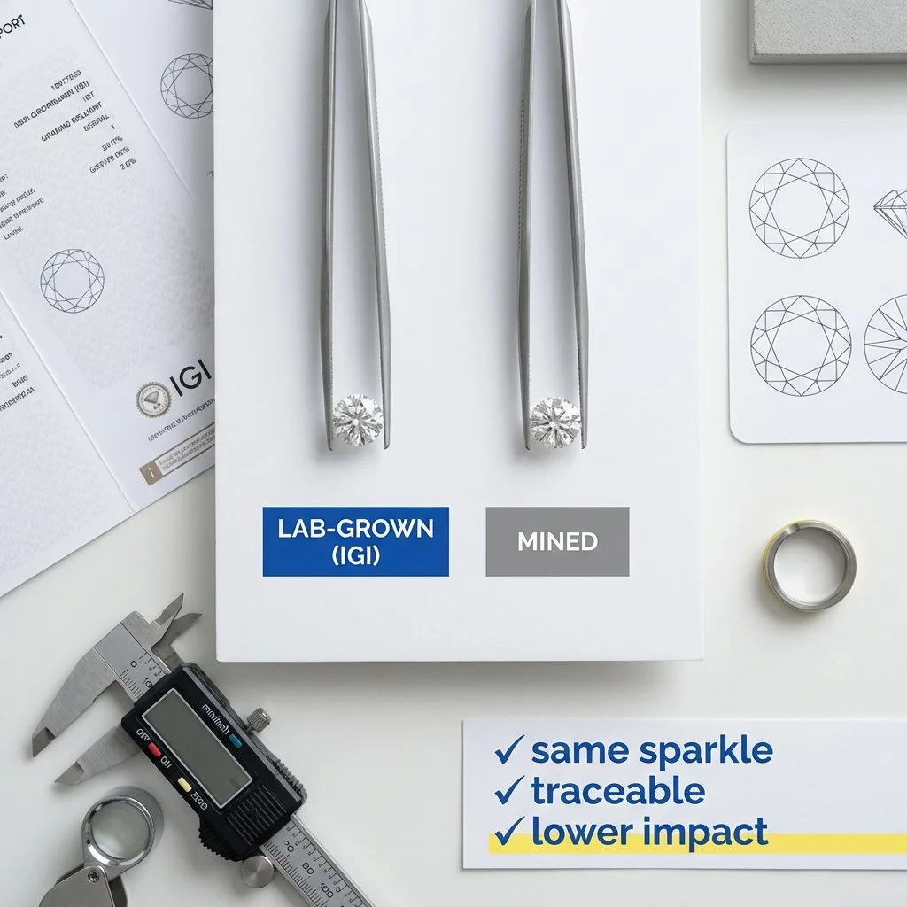 Our Lab-grown diamonds are IGI certified, guaranteeing top-tier cut, colour (D-F), and Clarity (VS+ and Above). Handpicked for their brilliance and precision, each diamond offers the same fire and sparkle as mined ones - without the environmental or ethical cost.